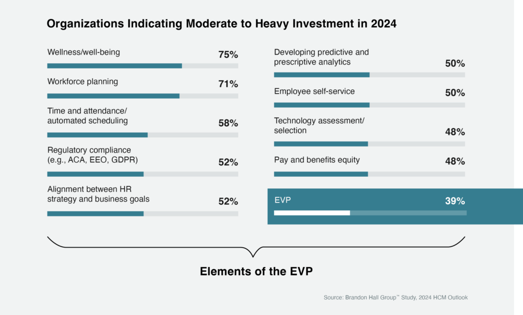 The Employee Value Proposition (EVP) is a critical pillar of an organization’s Human Capital Management (HCM) strategy. The EVP is a complex idea that can be summarized simply: it is why employees want to work for, and stay at, an organization. There are a number of components that go into the EVP and while those individual components remain a priority for the time and attention of companies, the EVP itself has slipped to the bottom of the list.