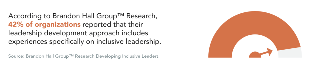 Empower leaders to make a positive impact on inclusion efforts. Develop leaders to be inclusive, but ensure that leaders at all levels, across the enterprise are part of the training on inclusive leadership. Set diversity goals for leadership roles and develop diverse succession pipelines. Review hiring practices to ensure a diverse slate of candidates is being considered. Require diverse interview panel members and enforce a more objective and standardized interviewing process to reduce unconscious bias and increase the likelihood of more valid hiring decisions. Set an expectation that leaders participate in training on unconscious bias, microaggressions, and cross-cultural communication on an ongoing basis. Build relationships and collaborate with organizations supporting underrepresented groups. Celebrate multicultural differences and promote inclusive behaviors daily.