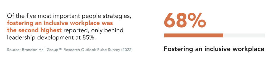 Foster an inclusive workplace by making it a business imperative that top leaders can own, and therefore, drive accountability. Communicate regularly on diversity representation and program participation to show commitment and increase accountability. Connect DE&I to business goals and articulate the business case and competitive advantage of a diverse, equitable and inclusive culture.