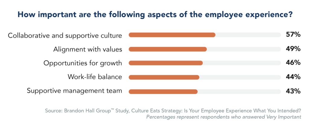 This type of culture development doesn’t happen on its own. It is the result of intentional focus on the part of executives. This single element consistently ranks highest among attributes that contribute to a positive employee experience. Ensuring a culture remains collaborative and supportive requires intention on the part of all involved.
