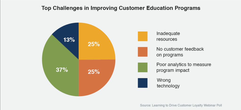 This challenge is compounded by the difficulty in accurately measuring the impact of these programs on business outcomes, making it hard to justify investments and improvements. Program designers face the complex task of creating content that caters to diverse customer needs and learning preferences, ensuring that the education is both accessible and effective for all users.